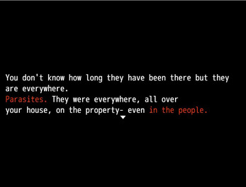 Your name is James, your a father of two and a loving husband who lives in the woods with his small family. They are not a perfect family by any means, but when you begin to see strange parasite like creatures all over your home things begin to spiral out of control. Panicked and determined to destroy the creatures to spare the wider world of discovering them, when you realize these creatures have infested your loved ones you prepare to get rid of them no matter the cost.